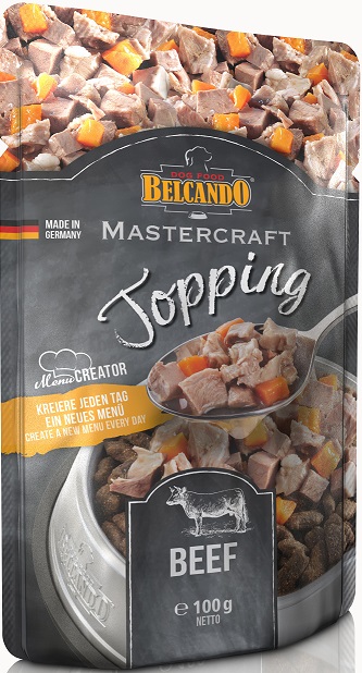 De nye Belcando Mastercraft toppings tillader dig at tilføje prikken over i'et til enhver tørfoder menu. De friske kød terninger er forsigtigt kogt i deres egen saft og blandet med nogle grøntsager.