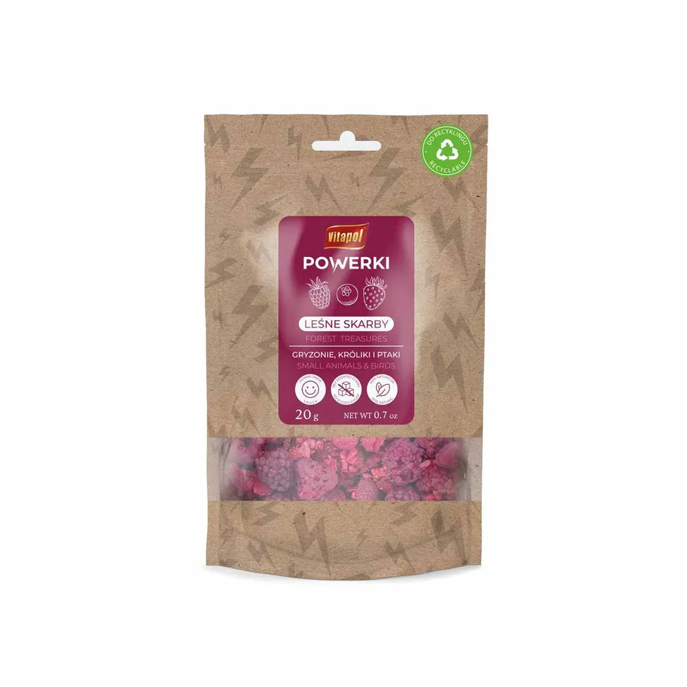Denne blanding af frysetørrede bær er den perfekte lille snack til hunde, der elsker noget sødt og sprødt. Bærrene er rige på fibre, antioxidanter og vitaminer – helt uden kunstige tilsætningsstoffer. En sund måde at tilføje variation til snackrutinen.