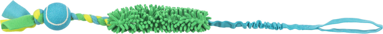Trixie Bungee tugger dummy med tennisbold er et holdbart og interaktivt hundelegetøj designet til træning og træklege. Dette legetøj har det hele, et håndtag du kan holde i, bungee, bidestof og flettet stærk fleece med en tennisbold fastgjort i enden. DHer får du den ultimative motivation til træning!