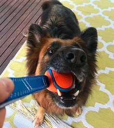 - Den kan godt bides i stykker, men holder længere end en almindelig bold.