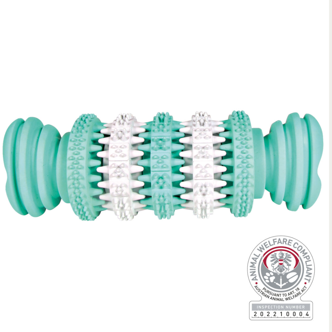 Dental stick fra Trixie er et sjov hundelegetøj, der kan hjælpe med at forbedre din hunds tandhygiejne. Fremstillet af naturgummi og har en speciel overfladestruktur, der hjælper med at rense tænderne og massere tandkødet under leg. Dette kan bidrage til at forebygge tandsten og tandkødsproblemer. Med et specielt udvikllet tandtrådsreb inden i, udviklet til at rense mellem din hunds tænder.
