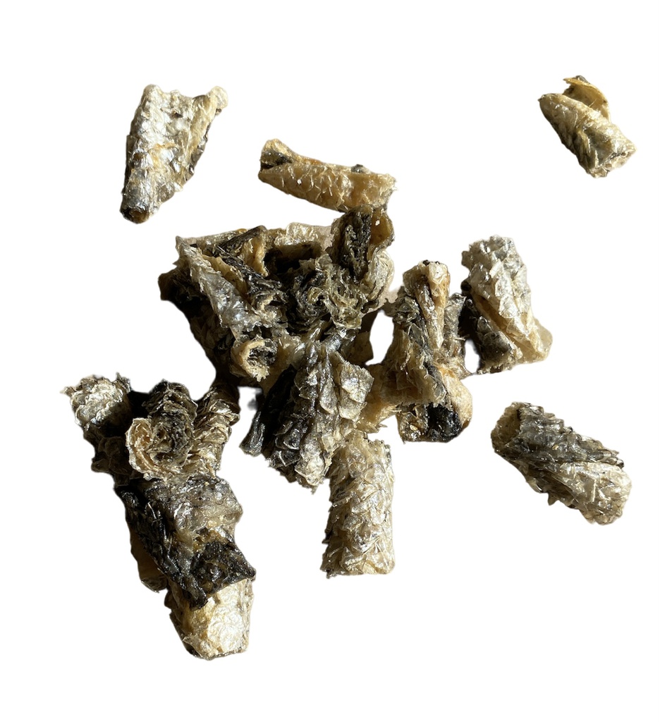 Lækre mini ruller af lakseskind din hund vil ELSKE som en hapser eller topping på dit foder!