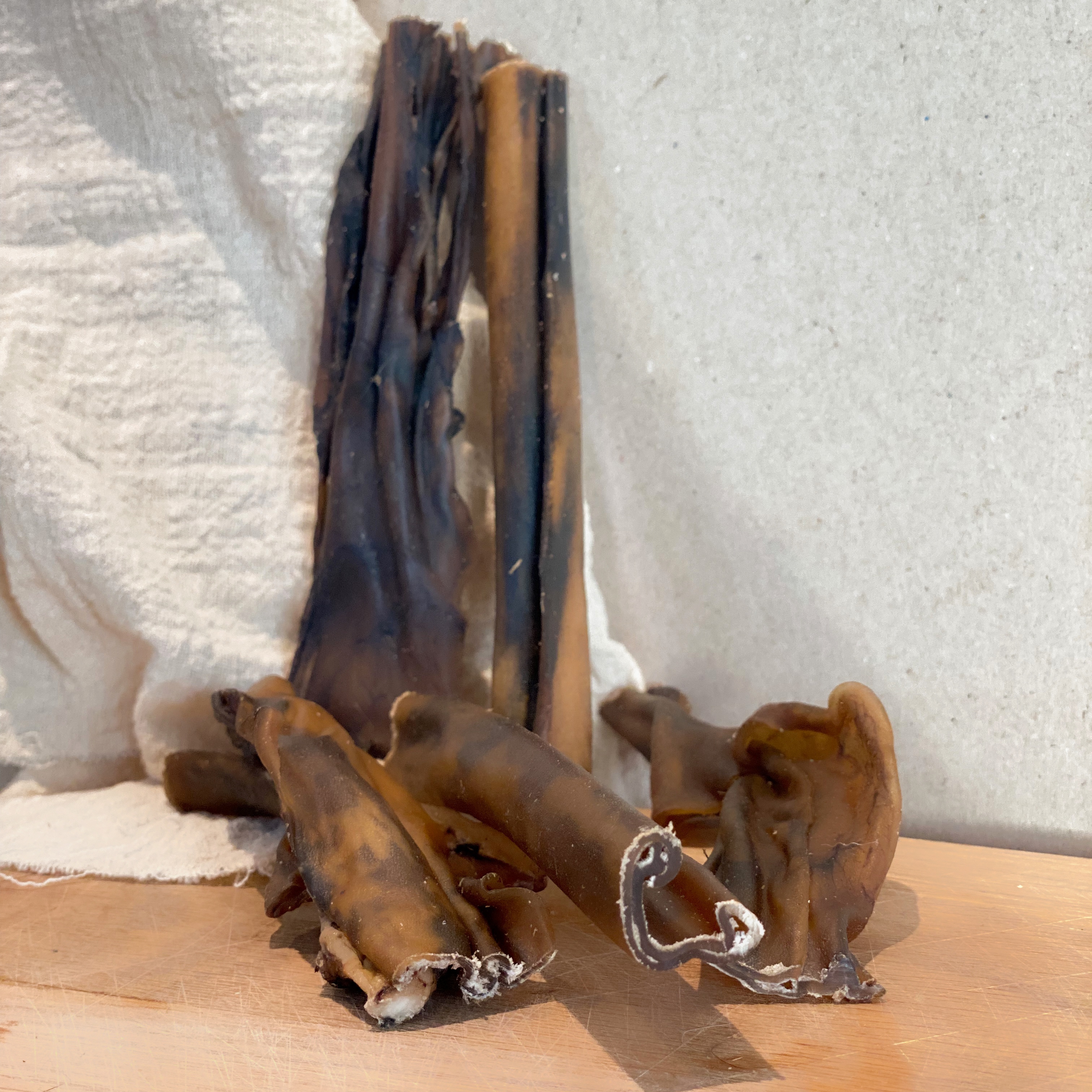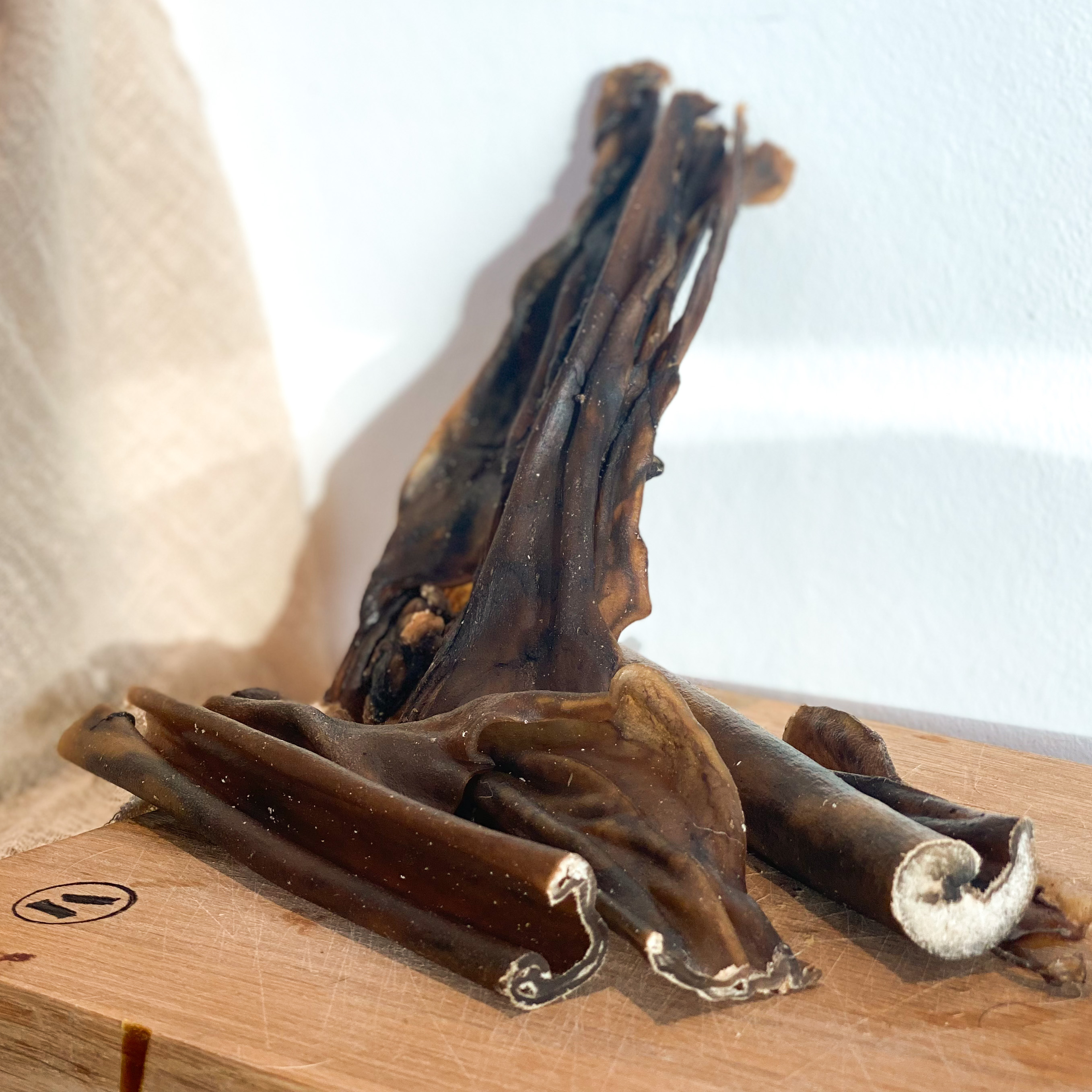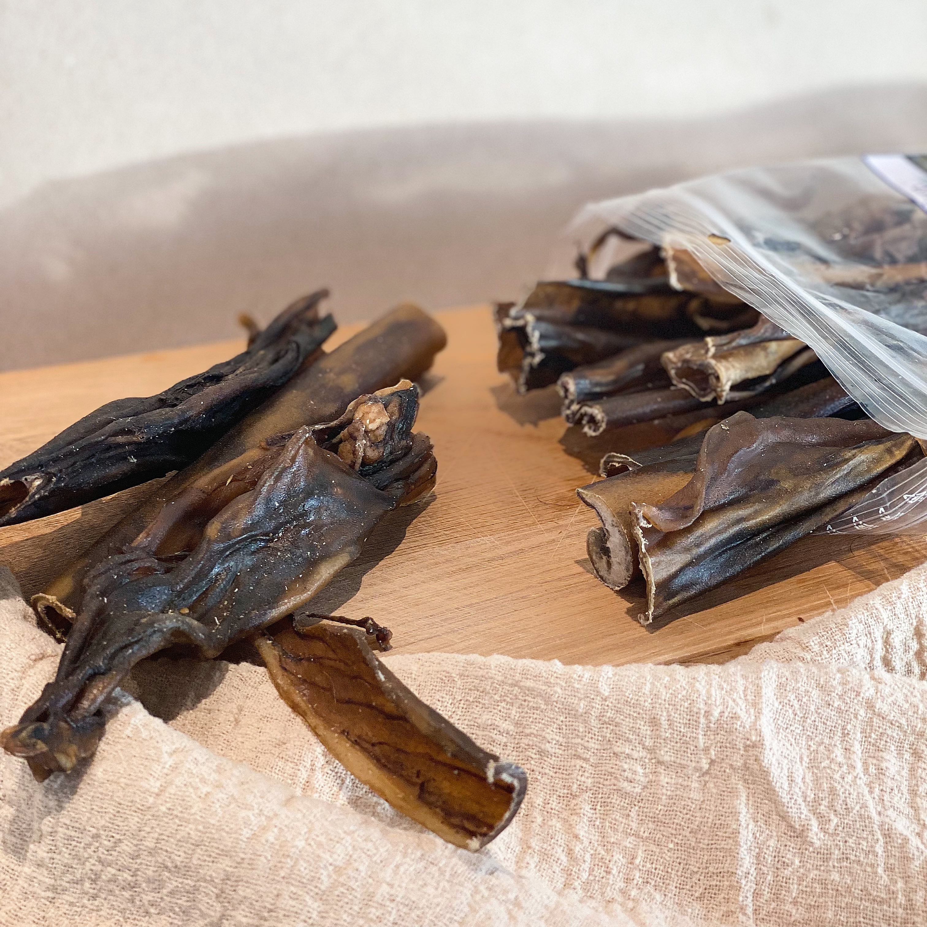 En snack vi anbefaler til både små, medium og store hunde. De har kort til medium holdbarhed alt efter din hunds tyggebehov.