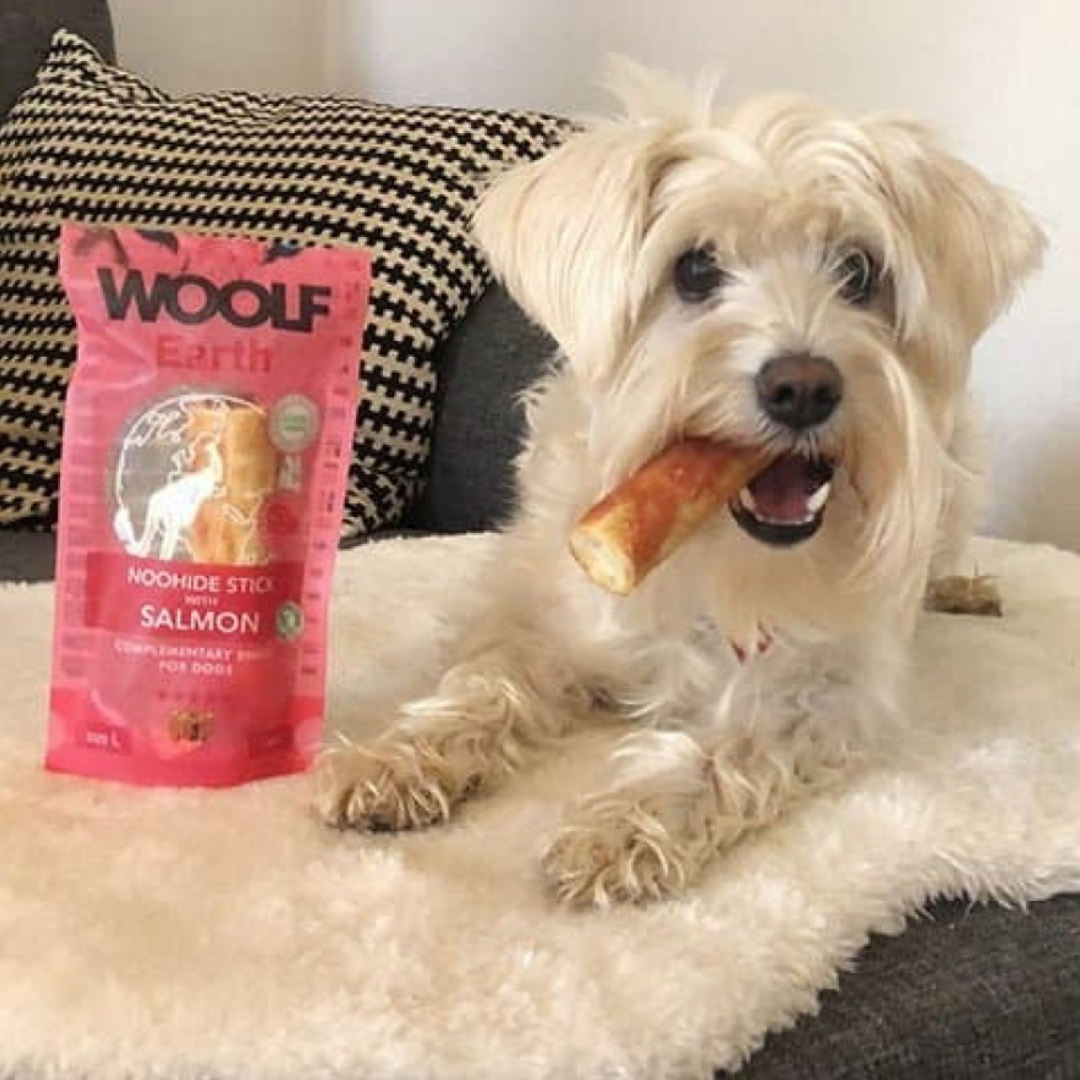 Woolf Earth Noohide Stick med Laks er et naturligt og kornfrit tyggeben, der giver timevis af tyggeglæde til din bedste ven.