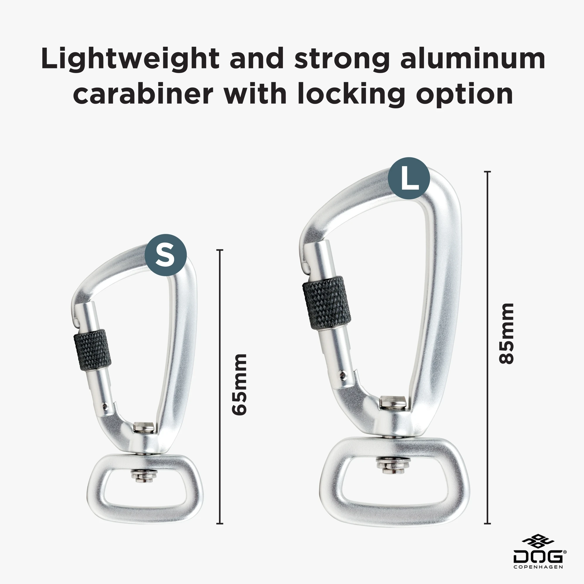 • Let og stærk aluminiums karabinhage med låsemulighed (2 størrelser)