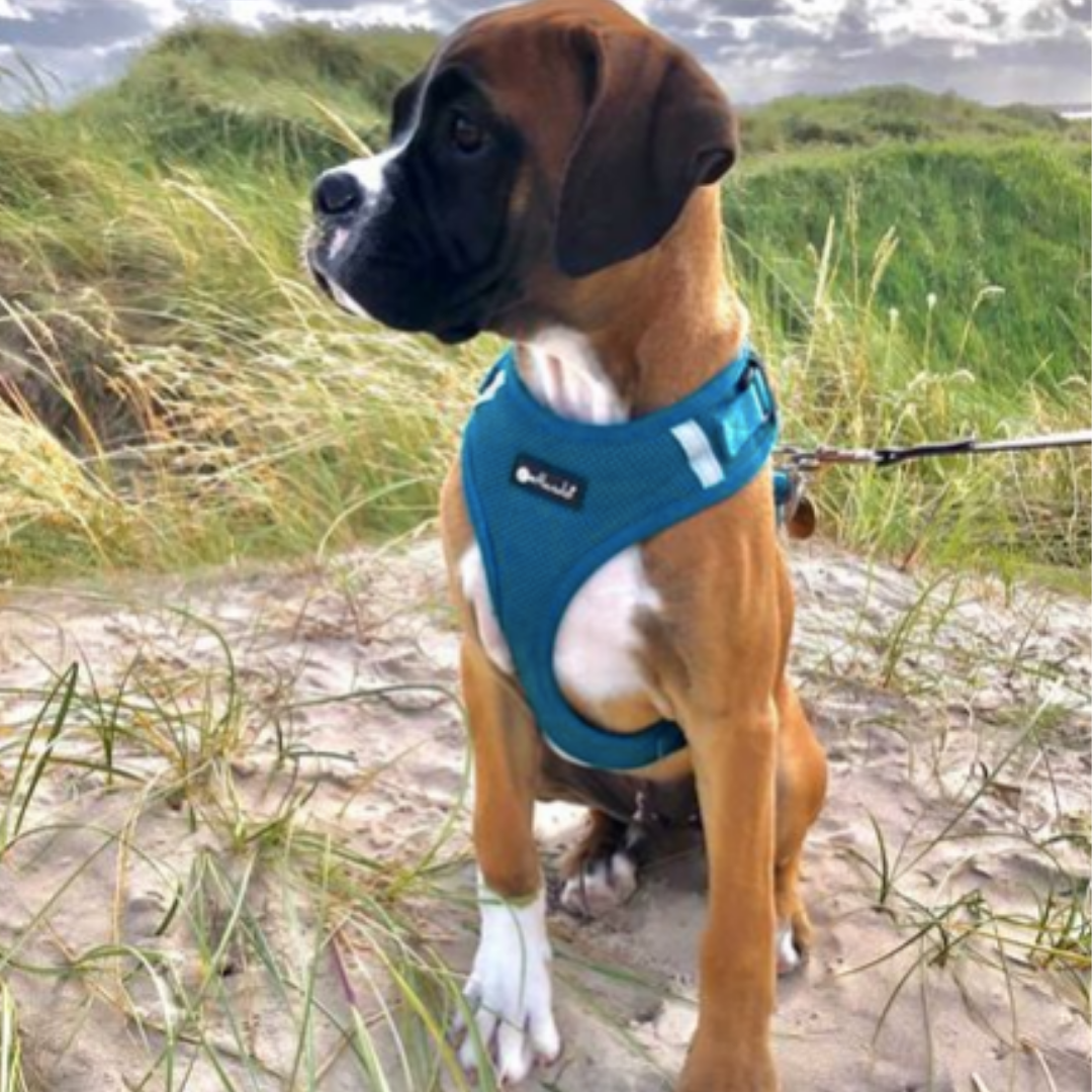Vi anbefaler Mesh-vesten til hvalpe, da det brede og bløde meshstykke på brystet, giver god støtte til en lille hvalp der ikke har lært at gå i snor endnu.