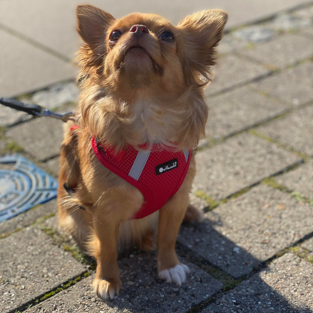 Vi anbefaler Mesh-vesten til hvalpe, da det brede og bløde meshstykke på brystet, giver god støtte til en lille hvalp der ikke har lært at gå i snor endnu.