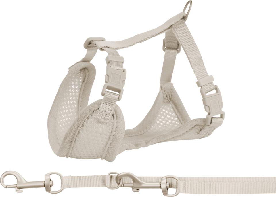 Den er fremstillet i åndbart mesh-materiale, som er både behageligt og let for små hvalpe og derfor ideelt til små og voksende hvalpe. Selen er nem at justere og tage af og på, så gåturen bliver en leg.