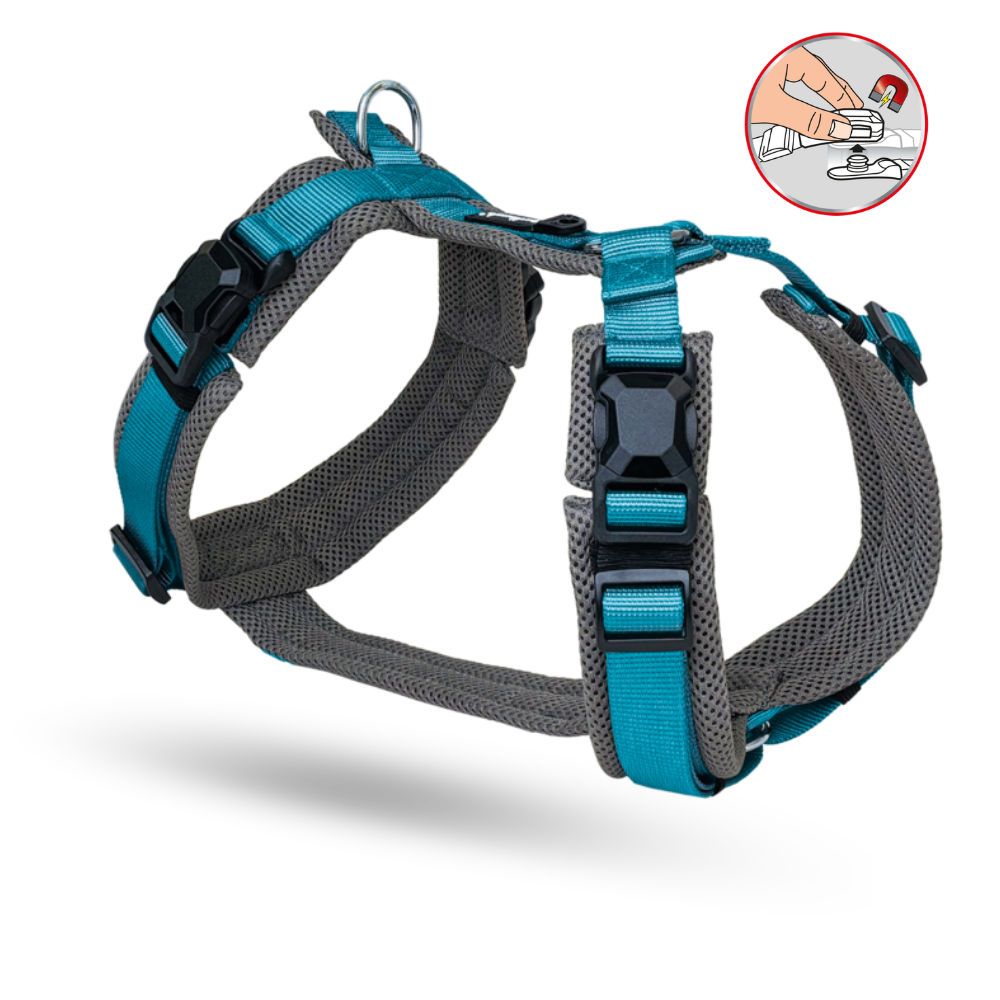 Selen er udstyret med magnetspænder ved både hals og bryst, som gør det utroligt nemt at tage selen på – helt uden at skulle trække den over hundens hoved. Perfekt til hunde, der ikke bryder sig om selen over hovedet – og en lettelse for dig! De er super stærke og du skal ikke bekymre dig om hvorvidt de holder selv til store hunde!