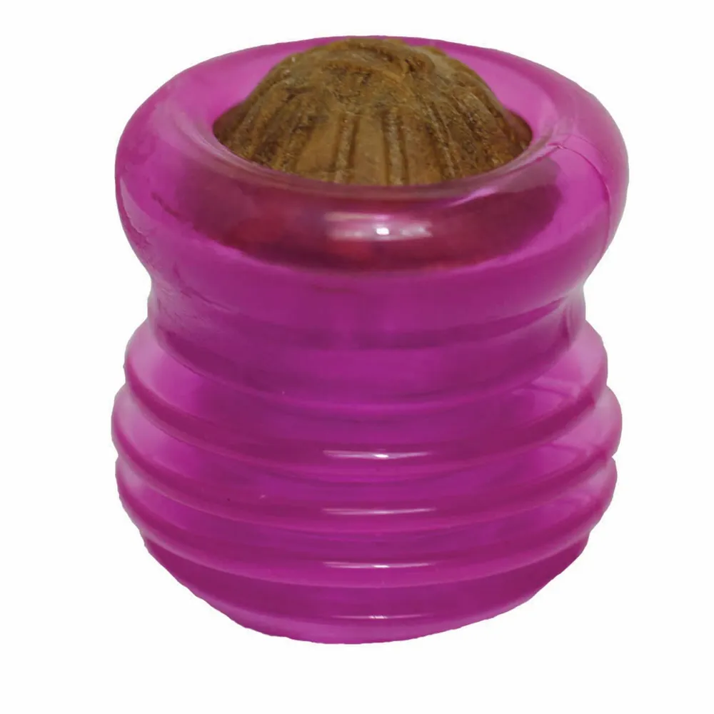Det er super holdbart og kan fyldes med, fx frosset vådfoder i den ene ende og en tyrepenis i den anden. Legetøjet kommer med en kornbaseret holdbar treat, som sidder i legetøjet når du modtager den, men den springer vi personligt selv over. I stedet bruger vi vådfoder med rent kød – frosset natten over for ekstra lang aktivering, med ingredienser som er det bedste af det bedste.