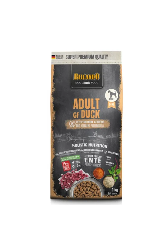 Til hunde med følsom mave eller intolerance over for korn er Belcando Adult GF And et lækkert og nærende alternativ. Denne premium hundemad er helt kornfri og baseret på 58% frisk andekød og andeprotein kombineret med amaranth en af de ældste landbrugsafgrøder, værdsat af aztekerne for sine styrkende egenskaber.
