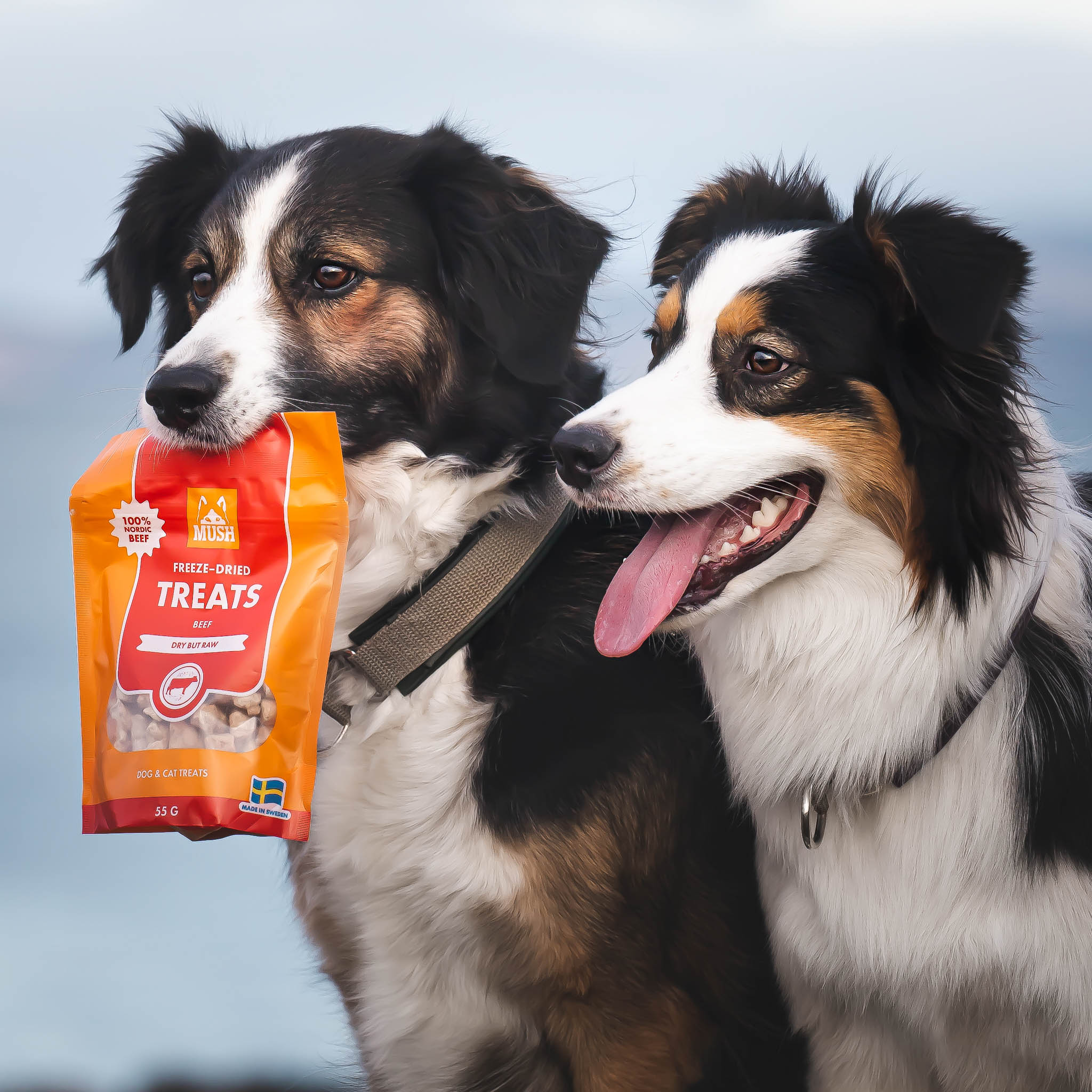 🥩 MUSH Frysetørrede Godbidder Okse 55g – Den uimodståelige smag og duft af oksekød!