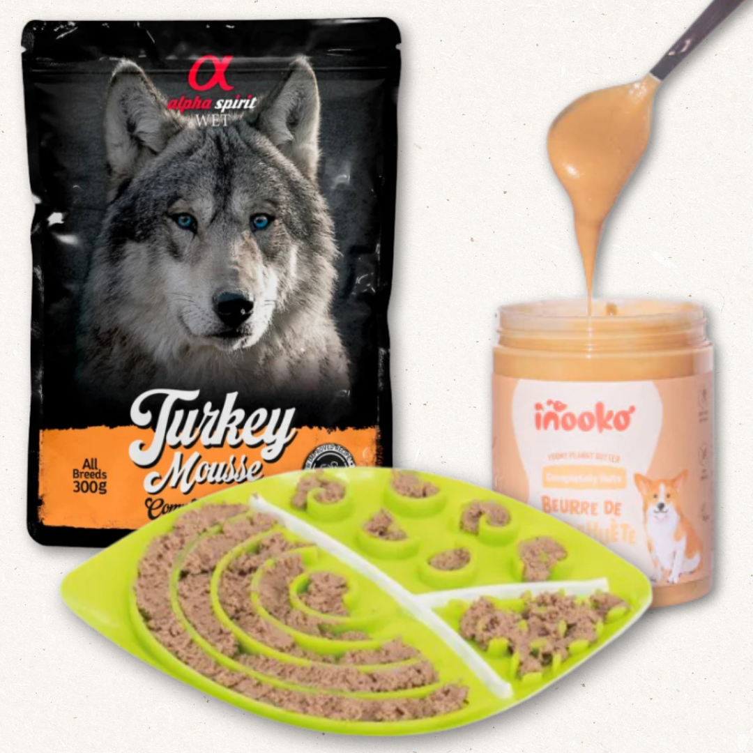 🎁 Som prikken over i’et får du også en GRATIS Alpha Spirit Kalkun Mousse, med 95 % kød og en blød tekstur, som både kan bruges som på slikkemåtten ideel til at ekstra forkælelse og motivering.
