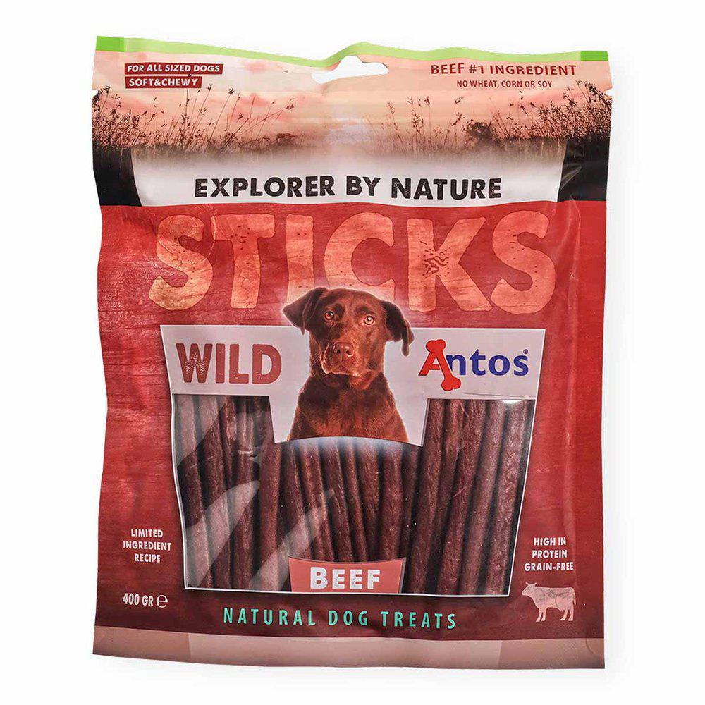 Wild Sticks Beef 400g er hundegodbidder i absolut topkvalitet, skabt af hele 96% rent oksekød og er nænsomt lufttørrede for at bevare den naturlige smag og næringsværdi.