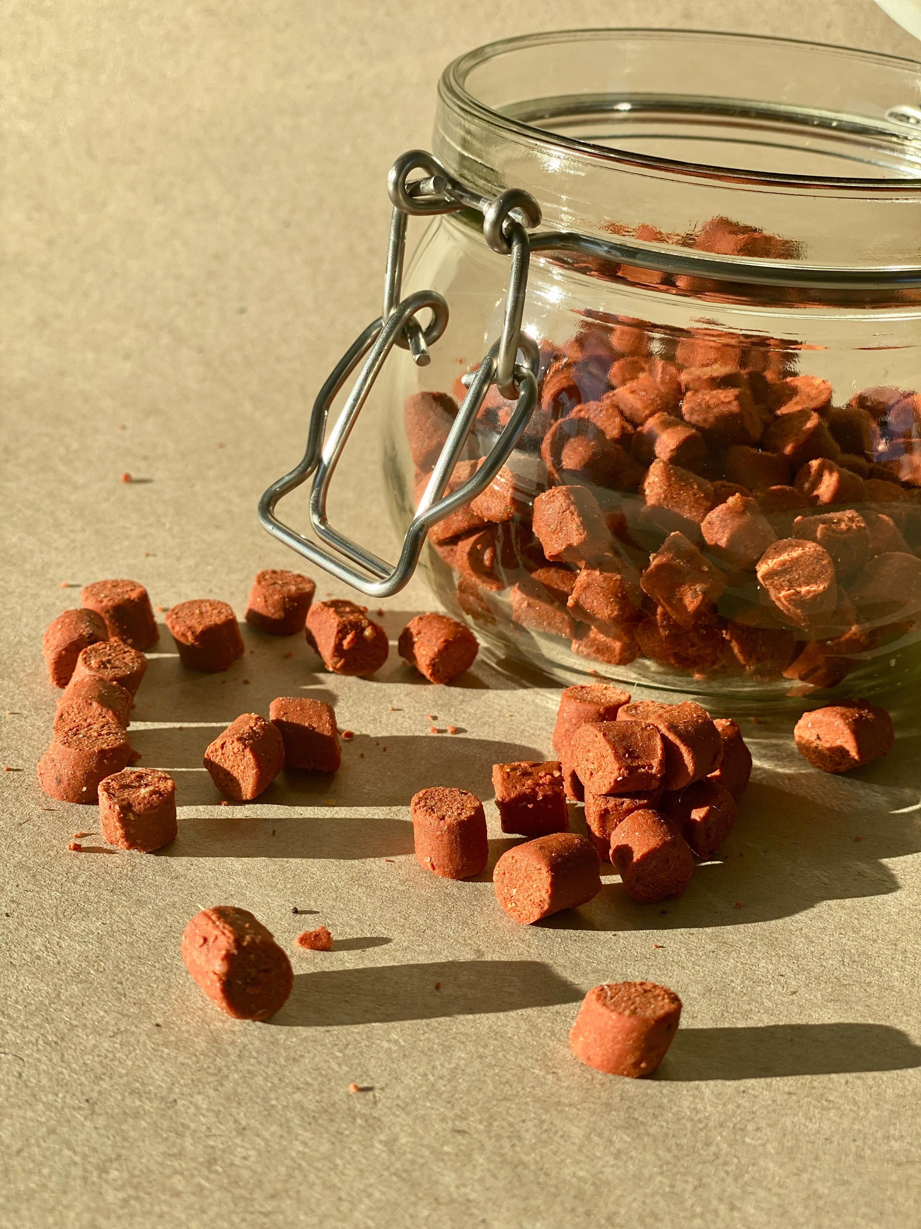 Softies er lækre, bløde godbidder, der egner sig PERFEKT til hundetræning, belønning eller bare som en lille ekstra forkælelse. En blød godbid gør det nemmere og hurtigere for hunden at spise den under træningen, så fokus forbliver på øvelserne i stedet for at tygge længe. Det gør Softies til et super valg for effektiv belønning! 🌱🐶