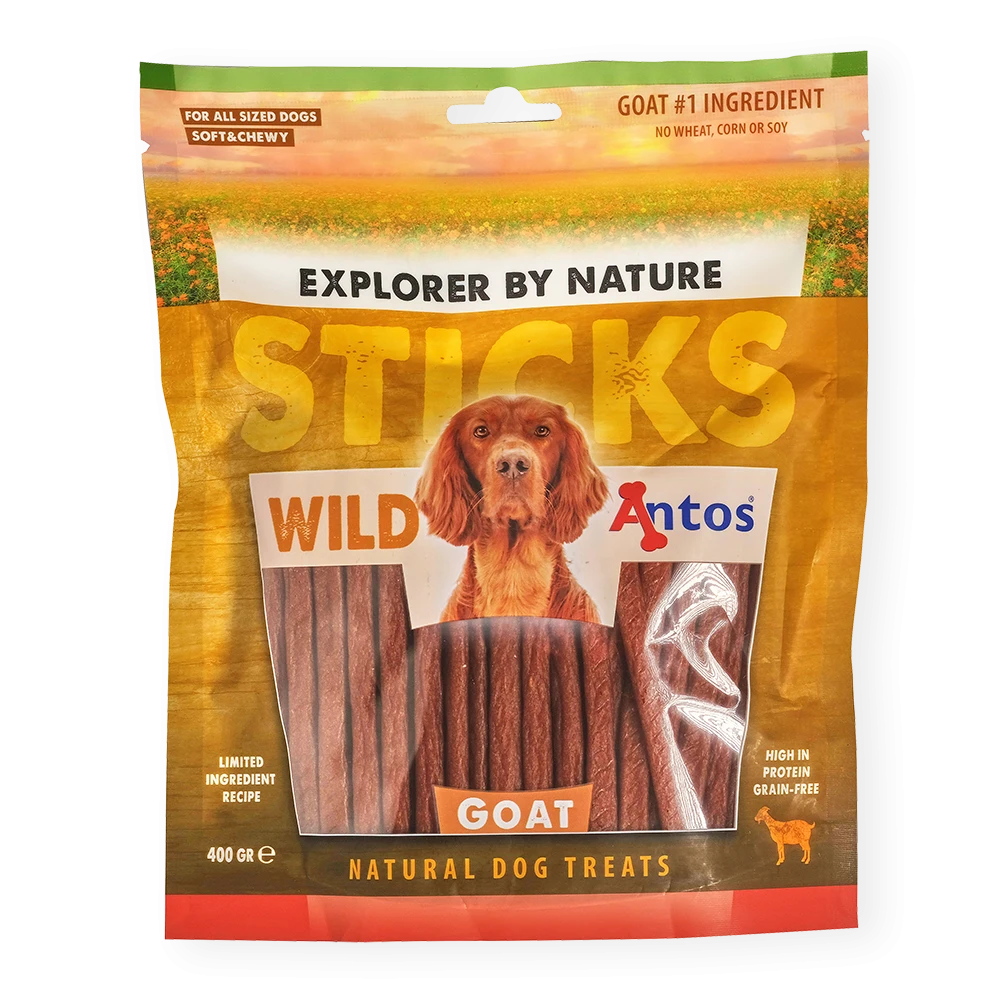 Wild Sticks Ged 400g er hundegodbidder i absolut topkvalitet, skabt af hele 80% gedekød og nænsomt lufttørrede for at bevare den naturlige smag og næringsværdi.