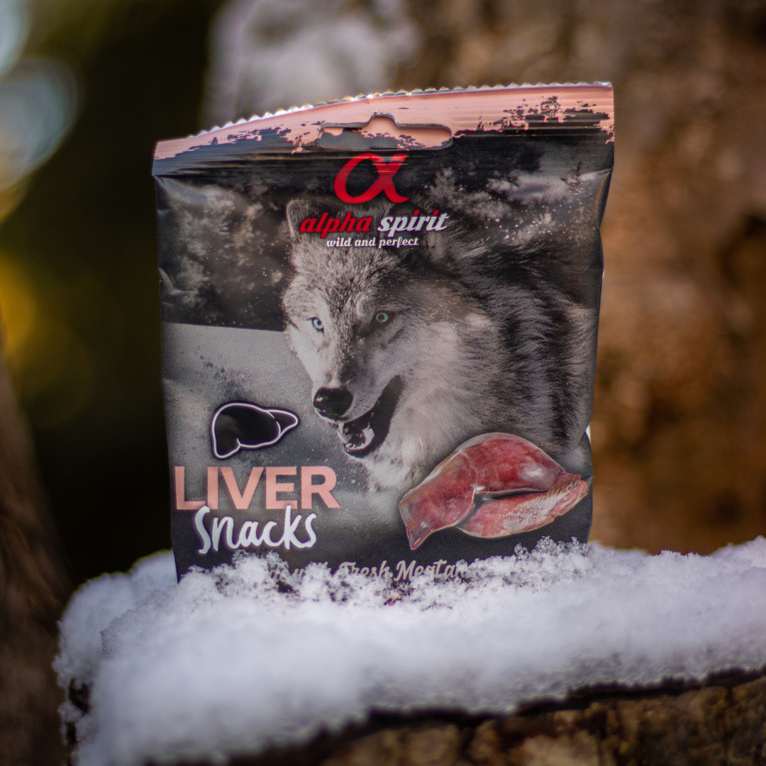 Alpha Spirit Blød Snack med lever er en lækker og kornfri træningsgodbid i tern, som er lavet på hele 85 % frisk kød og fisk, uden kødmel, kunstige tilsætningsstoffer eller andet unødigt fyld.