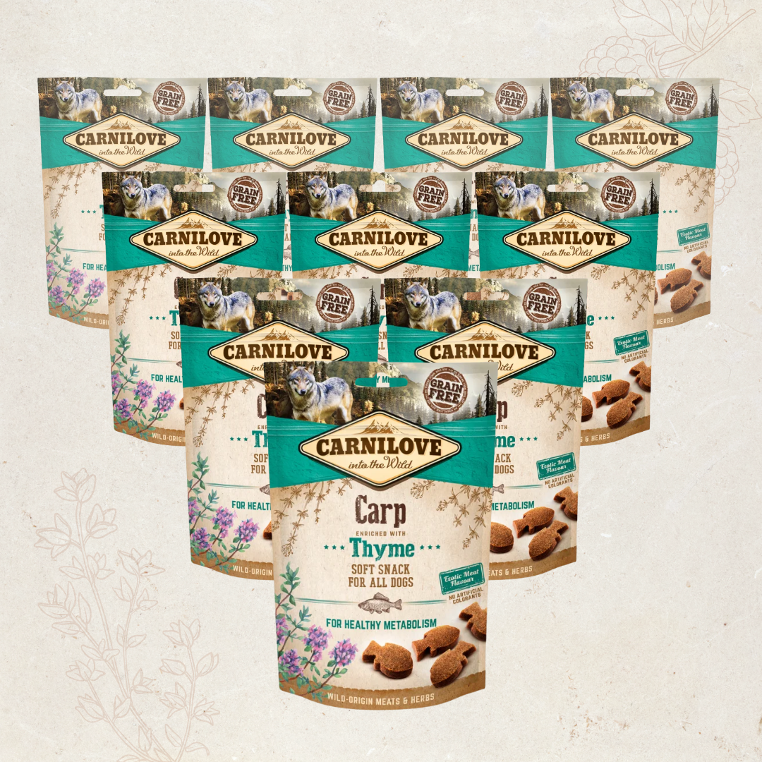 SPAR 22% PÅ EN HEL KASSE - Carnilove Semi-Moist Godbidder, Karpe & Timian - 10 x 200 gram