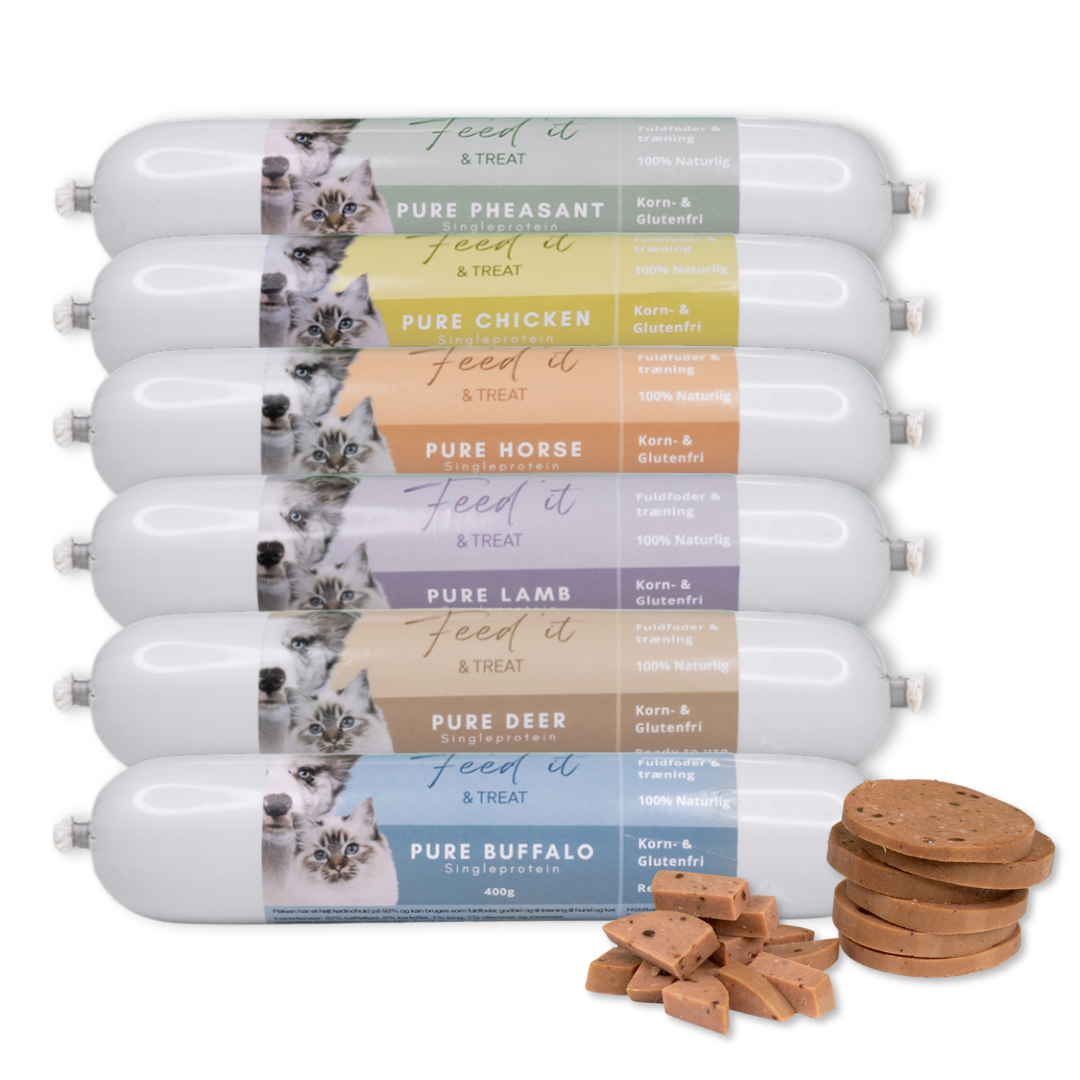 Med denne Feed'it & Treat smagspakke får du 6 lækre godbidspølser til din hund. Hver pølse har sin egen smag, så din hund kan prøve lidt af det hele og måske finde en ny favorit.