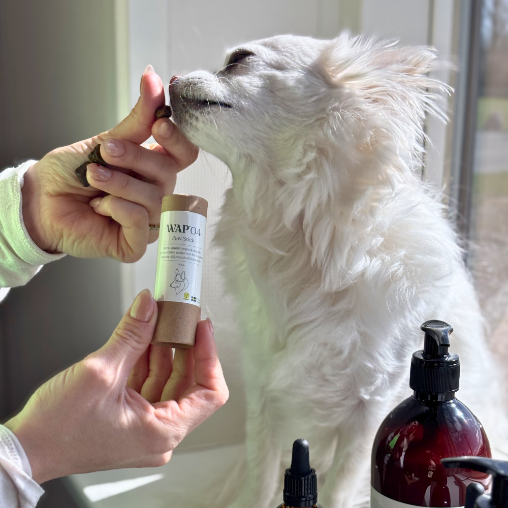 Pote Sticken er ikke bare endnu en pote balm. Den er udviklet med fokus på rene, plantebaserede ingredienser, som giver dine hunds poter den pleje, de har brug for i en aktiv hverdag.