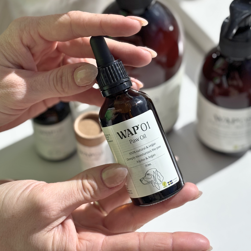 WAP Dog Care blev skabt ud fra et ønske om bedre og mere naturlige produkter, efter grundlæggerens egen hund fik en voldsom reaktion på traditionelle plejeprodukter.'