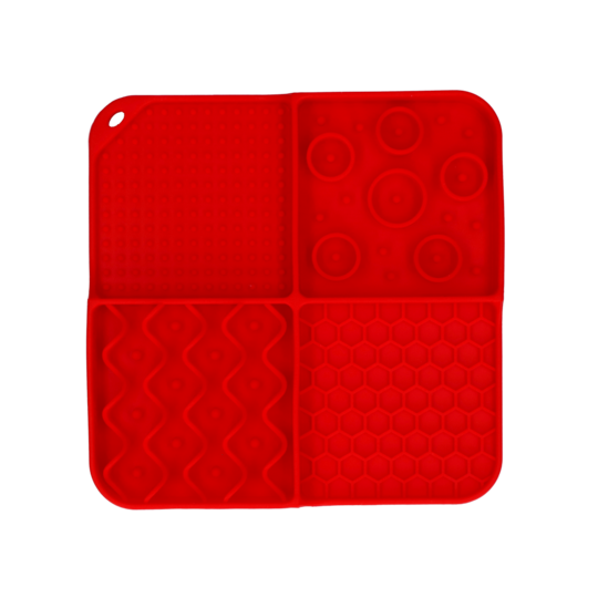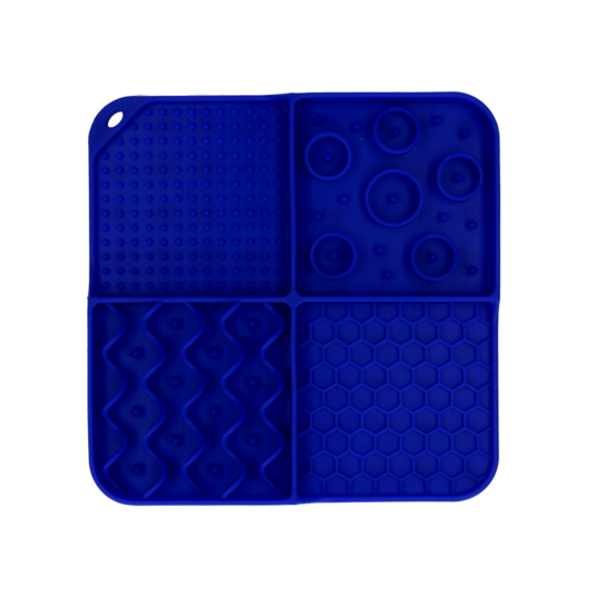 Slikkemåtten er alsidig og kan bruges til måltider, som belønning, til leg og aktivitet, til at bekæmpe kedsomhed eller som en distraktion under pleje eller badning.