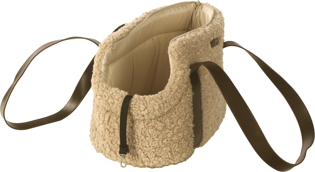 Pookie Lux bæretasken er lavet af blød fleece og polstret med skum, der giver både komfort og formfasthed. Tasken har lynlås i toppen, justerbar bærerem, opbevaringslomme og en sikkerhedsline indeni. Med den aftagelige, polstrede bund bliver det en hyggelig oplevelse for din hund at komme med – uanset om det er på café, i bilen eller på gåtur