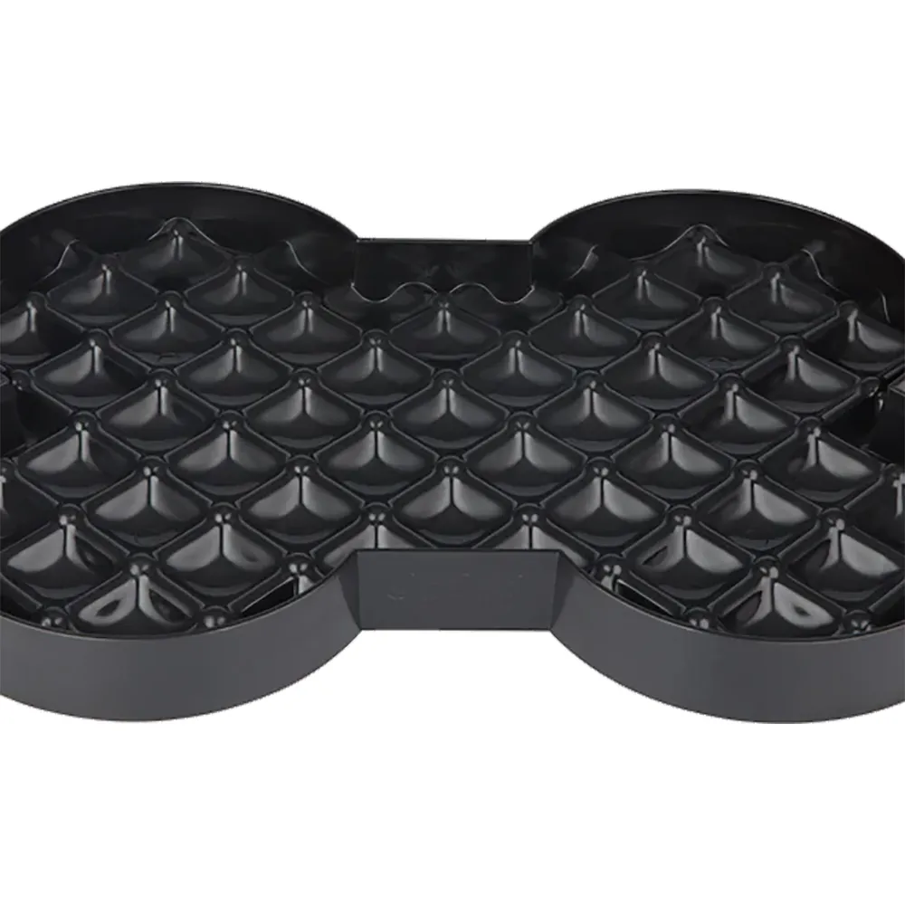 De strukturerede felter gør, at foder, vådfoder eller pate fordeles jævnt, så hunden bruger længere tid på måltidet i stedet for at sluge maden på få sekunder.
