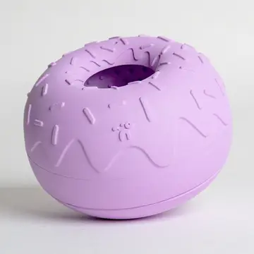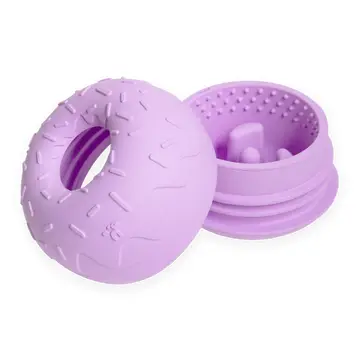 Den er genial med sin 2 i 1 funktion. Du kan enten fylde donutten med godbidder, tørfoder eller snack og brug den som et vippelegetøj hvor din hund skal puffe til den for at få sin belønning. Det er også muligt at fylde med vådfoder og frys den for længere aktivering og ro!