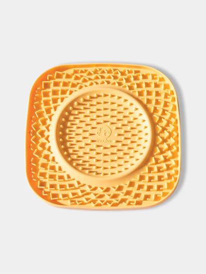 Yoomy Plate er en stor og udfordrende slikkemåtte i fødevaregodkendt silikone, der stimulerer din hunds mentale og fysiske behov på en sjov og beroligende måde. Det tallerkenformede design giver masser af plads og muligheder for at fordele vådfoder, paté, yoghurt eller peanutbutter.