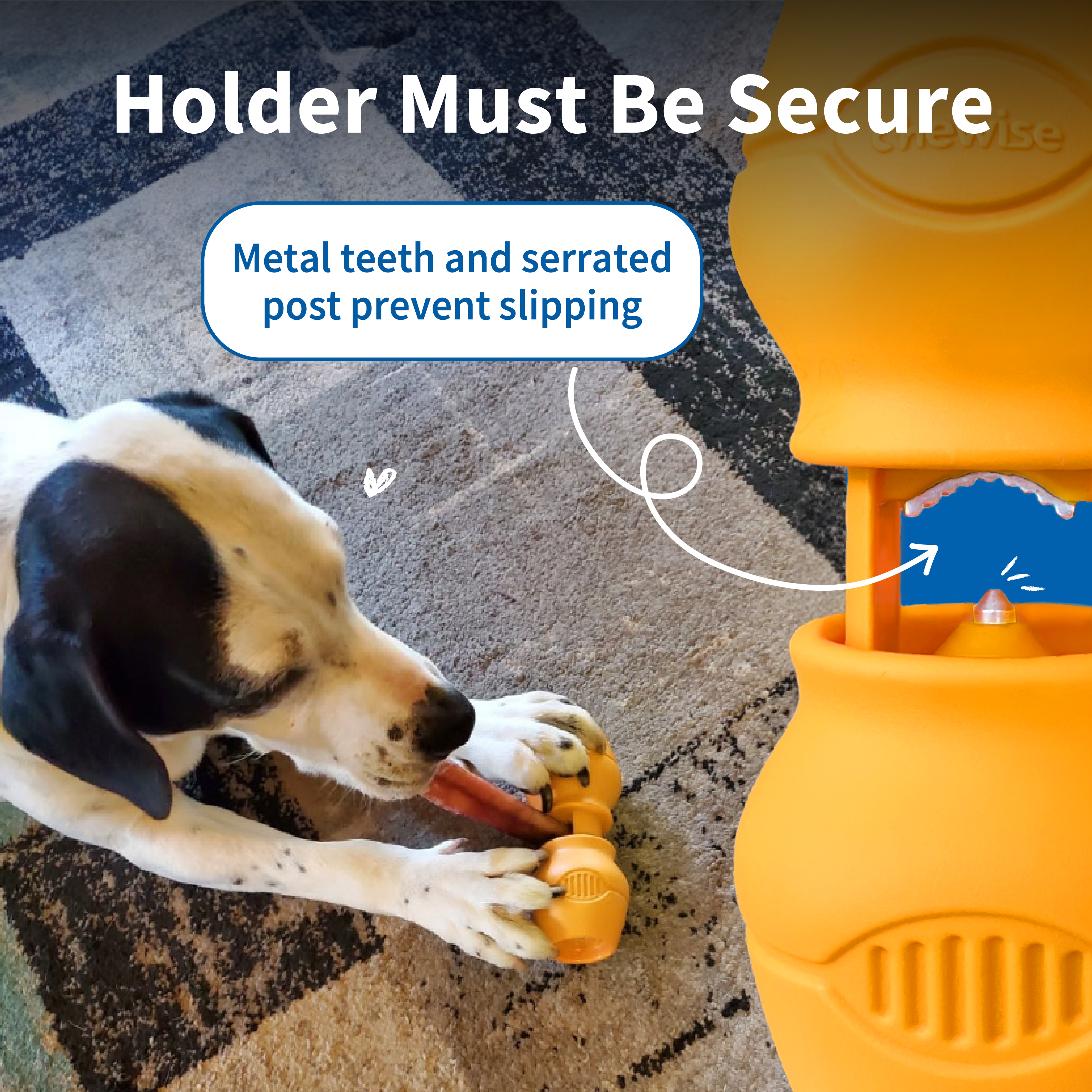 Chewise Snack‑Holder er udviklet med ét formål: at gøre tyggetid både sikker og problemfri for dig og din hund!
