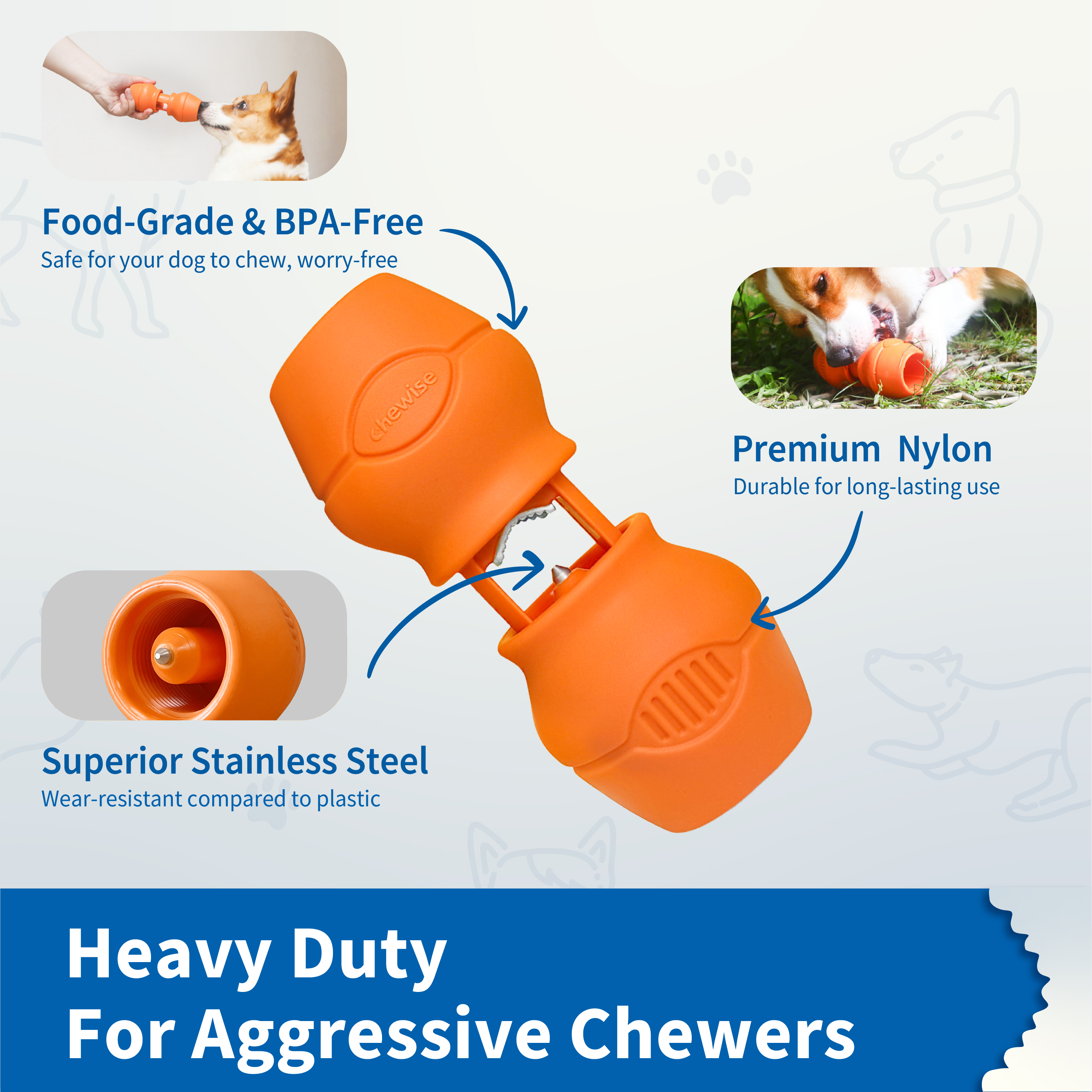 Med en patenteret sikkerhedsmekanisme og materialer i høj kvalitet, er Chewise meget mere end en snack-holder – det er en investering i tryghed når din hund skal forkæles.