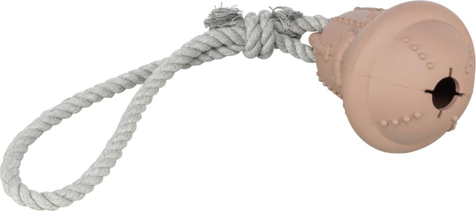 Festlig juleklokke i naturligt gummi med solidt bomuldsreb: perfekt til leg, tyg og forkælelse i julen. Legetøjet kan også fyldes med godbidder for ekstra aktivering og underholdning. Ideelt til både leg, tyggetid og mental stimulering hele december.