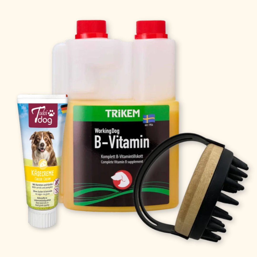 Du får også et flydende B-vitamin tilskud fra Working Dog, som du nemt kan blande i hundens foder. B-vitaminer spiller en vigtig rolle for både hud, pels, energi og flere af kroppens funktioner, og kan være en rigtig god støtte i perioder hvor hunden fælder.