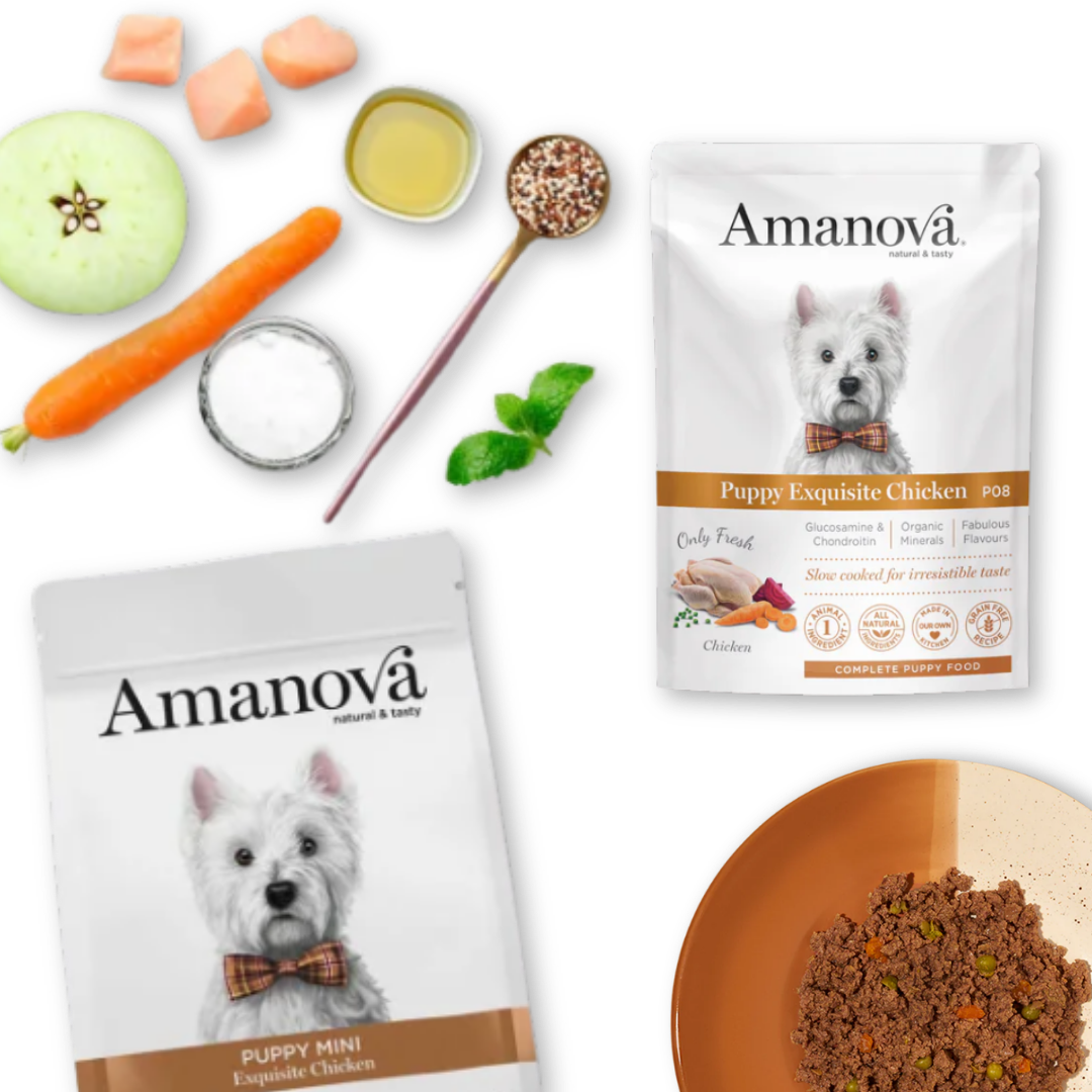 Amanova Udsøgt Kylling til små hunde er udviklet som et fuldfoder, hvor råvarekvalitet, energitæthed og hensynet til små hvalpes særlige behov er tænkt ind i hver detalje.